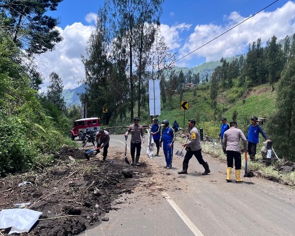Aksi Cepat Tanggap Polres Probolinggo Tangani Tanah Longsor di Jalur Bromo
