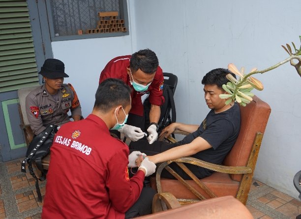 Kehadiran tim kesehatan Brimob Polda Jatim di lokasi mendapat sambutan positif dari warga sekitar.