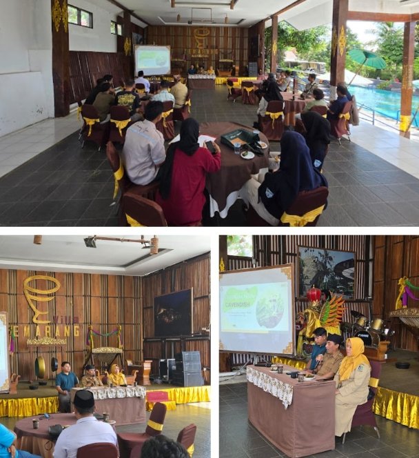 Sebagai narasumber, Moh. Bagus Salim, ST., dari PT Nusantara Segar Abadi—produsen pisang merek Sunpride—memberikan pelatihan teknis budidaya pisang Cavendish dengan standar kualitas ekspor.