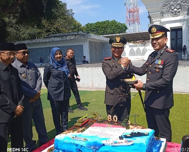 Insertnews.com //Banyuwangi – Dalam momen penuh kebersamaan, Kapolresta Banyuwangi Kombespol Rama Samtama Putra, S.I.K., M.Si., M.H. menghadiri Upacara Hari Ulang Tahun (HUT) ke-80 Tentara Nasional Indonesia (TNI) yang digelar di Taman Blambangan Banyuwangi, Minggu pagi (05/10/2025).