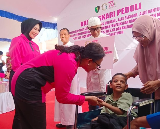 Insertnews.com //Ende – Ketua Umum Bhayangkari, Ny. Julianti Sigit Prabowo, melaksanakan rangkaian kegiatan Bhayangkari Peduli di Kabupaten Ende, Nusa Tenggara Timur, Rabu (1/10/2025). Kegiatan ini meliputi penyaluran bantuan sosial, bakti kesehatan, serta bakti religi yang dipusatkan di halaman Kantor Camat Ende Utara, Kelurahan Kota Raja, Kecamatan Ende Utara.