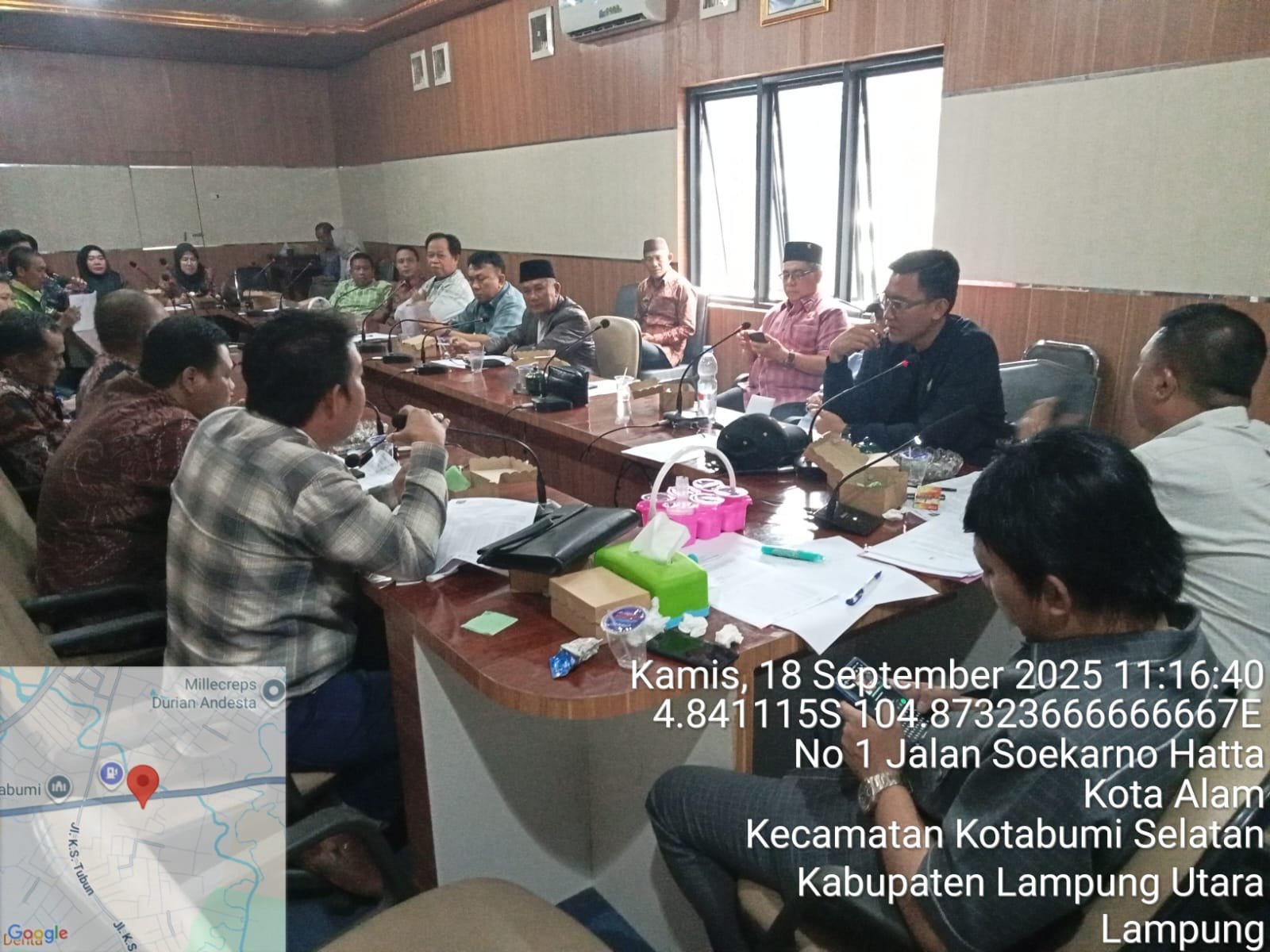 Hearing Perwakilan Masyarakat 16 Desa di pimpin langsung Yusrizal, ST. ketua DPRD kabupaten Lampung Utara Ketua komisi 1, 2 dan 3 beserta anggota DPRD lainnya, Camat Sungkai Utara, Porkopimda, serta BPN Lampung Utara.