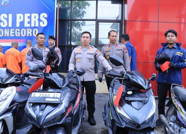 Kapolres Bojonegoro,AKBP Afrian Satya Permadi menjelaskan, Lima orang tersangka telah diamankan karena diduga terlibat dalam serangkaian aksi pencurian sepeda motor di wilayah Bojonegoro.
