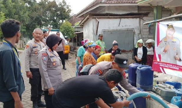 Melihat hal tersebut, Kapolres Pasuruan, AKBP Jazuli Dani Iriawan memerintahkan anggotanya untuk droping air bersih di lokasi terdampak kekeringan.
