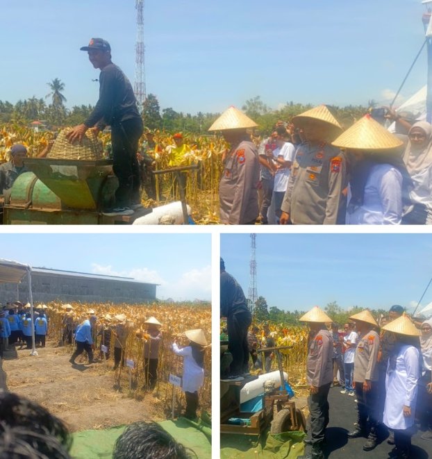 Dalam kesempatan tersebut, Kapolresta Banyuwangi Kombespol Rama Samtama Putra, S.I.K., M.Si., M.H., melaporkan capaian pendampingan Polresta Banyuwangi terhadap lahan jagung seluas 1.772,30 hektare, terdiri dari lahan produktif, perhutanan sosial, lahan baku sawah, dan pesantren. Dari total luasan, 1.048 hektare sudah ditanami, sementara 433 hektare berhasil dipanen dengan total produksi mencapai 1.445,46 ton jagung.