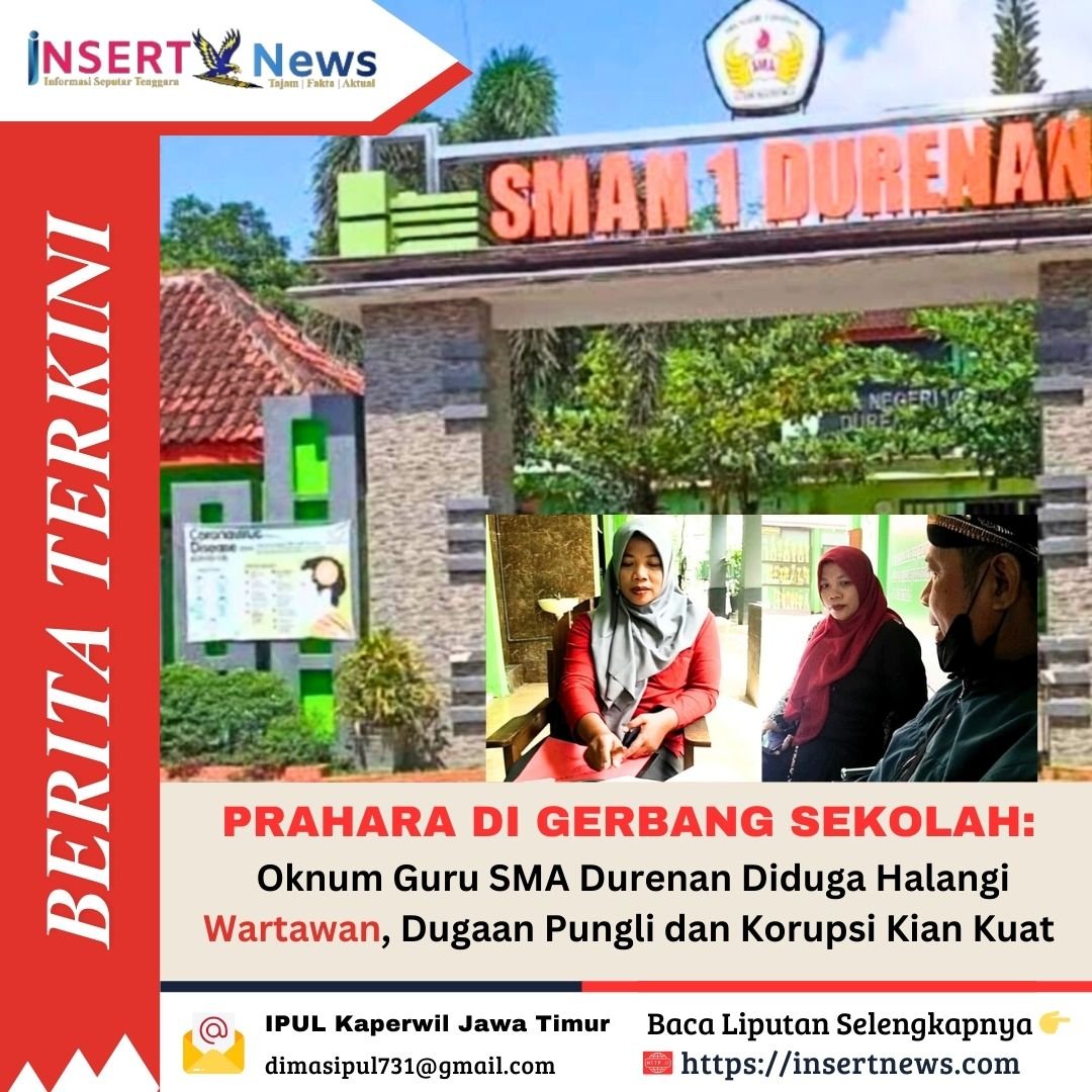 Tulungagung || !nsert News.com – Kasus penolakan terhadap wartawan kembali mencuat di dunia pendidikan Jawa Timur. Setelah insiden serupa di SMKN 3 Boyolangu Tulungagung, kini giliran SMA Negeri Durenan Trenggalek menjadi sorotan publik.