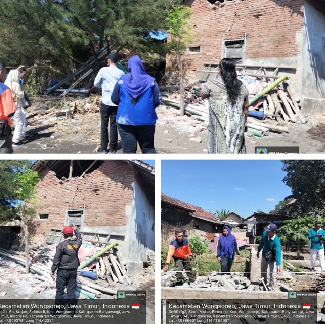 Tim Tagana bersama jajaran Dinsos PP KB Banyuwangi langsung turun ke lapangan untuk membantu masyarakat terdampak. Mereka melakukan asesmen.