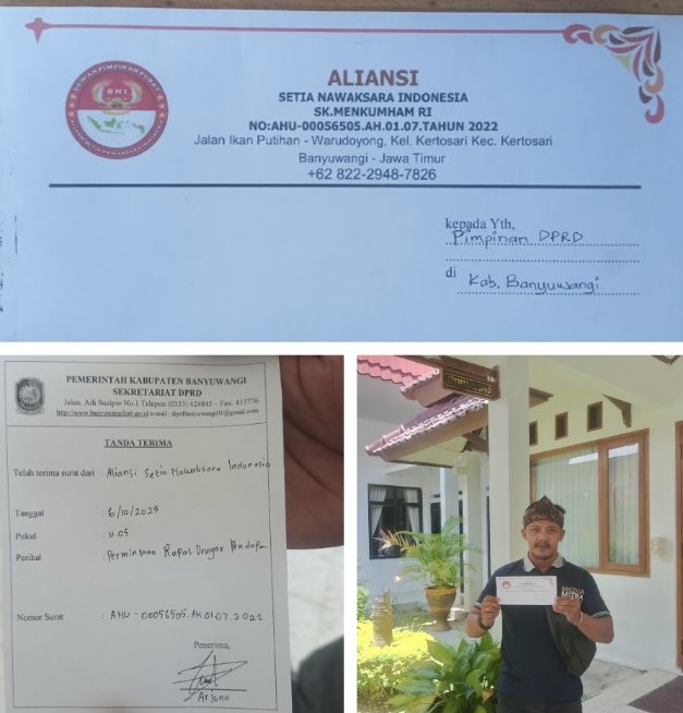 Insertnews.com //Banyuwangi – Dewan Pimpinan Pusat (DPP) Setia Nawaksara Indonesia (SNI) resmi melayangkan surat hearing kepada Dewan Perwakilan Rakyat Daerah (DPRD) Kabupaten Banyuwangi, pada Senin (06/10/2025). Hearing tersebut diajukan sebagai bentuk aspirasi dan kekecewaan masyarakat wilayah Sanggar dan Muncar terhadap Pemerintah Kabupaten Banyuwangi (Pemkab) terkait dugaan kurangnya transparansi dalam aktivitas tambang emas di kawasan Tumpang Pitu yang dikelola oleh PT Bumi Suksesindo (PT BSI).