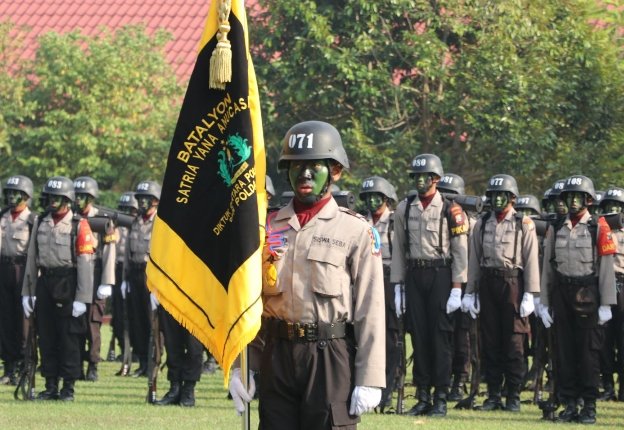 Dalam upacara yang berlangsung khidmat, angkatan Diktukba Polri T.A. 2025 SPN Polda Jatim secara resmi diberi nama “Satria Yana Anucasana”.